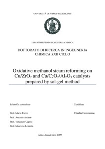 Cammarano, Claudia (2009) Oxidative methanol steam reforming on Cu/ZrO2 and Cu/CeO2/Al2O3 catalysts prepared by sol-gel method. [Tesi di dottorato] (Inedito)