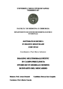 | Titolo: | IMAGING MULTIMODALE PET/TC IN CAMPO PRECLINICO: STUDIO DI UN MODELLO MURINO DI INFARTO DEL MIOCARDIO |
