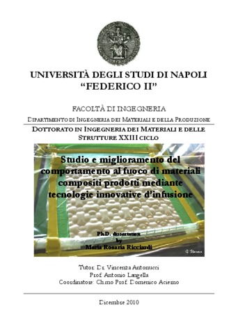 | Titolo: | Studio e miglioramento del comportamento al fuoco di materiali compositi prodotti mediante tecnologie innovative d'infusione |