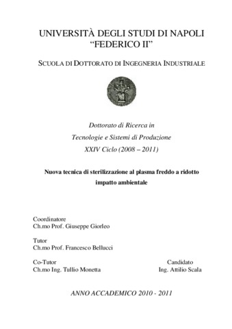 Scala, Attilio (2011) Nuova tecnica di sterilizzazione al plasma freddo a ridotto impatto ambientale. [Tesi di dottorato] (Inedito)