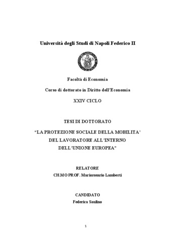 Saulino, Federica (2011) LA PROTEZIONE SOCIALE DELLA MOBILITA' DEI LAVORATORI ALL'INTERNO DELL'UNIONE EUROPEA. [Tesi di dottorato] (Inedito)