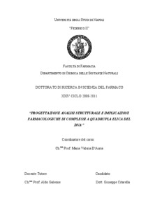 Citarella, Giuseppe (2011) PROGETTAZIONE ANALISI STRUTTURALE E IMPLICAZIONI FARMACOLOGICHE DI COMPLESSI A QUADRUPLA ELICA DEL DNA. [Tesi di dottorato] (Inedito)