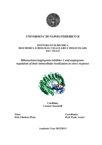 Sarcinelli, Carmen (2013) Ribonuclease/angiogenin inhibitor 1 and angiogenin: regulation of their intracellular localization in stress response. [Tesi di dottorato] (Inedito)