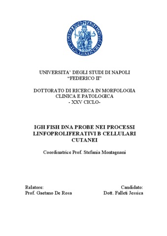 Falleti, Jessica (2013) IGH FISH DNA PROBE NEI PROCESSI LINFOPROLIFERATIVI B CELLULARI CUTANEI. [Tesi di dottorato]