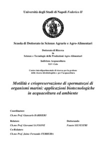 | Titolo: | Motilità e criopreservazione di spermatozoi di organismi marini: applicazioni biotecnologiche in acquacoltura ed ambiente |