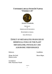 Nigro, Marco (2013) EFFECT OF METABOLITES PRODUCED BY BENEFICIAL FUNGI ON THE PLANT METABOLOME, PHYSIOLOGY AND AGRONOMIC PERFORMANCE. [Tesi di dottorato]