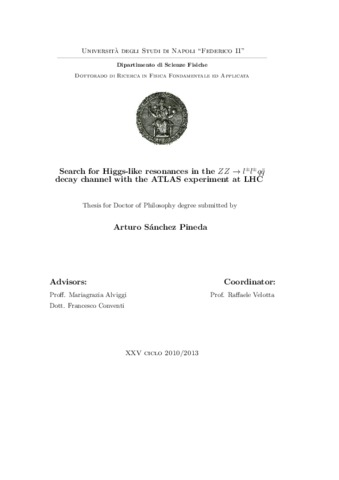 Sanchez Pineda, Arturo (2013) Search for Higgs-like resonances in the ZZ-> llqq decay channel with the ATLAS experiment at LHC. [Tesi di dottorato]