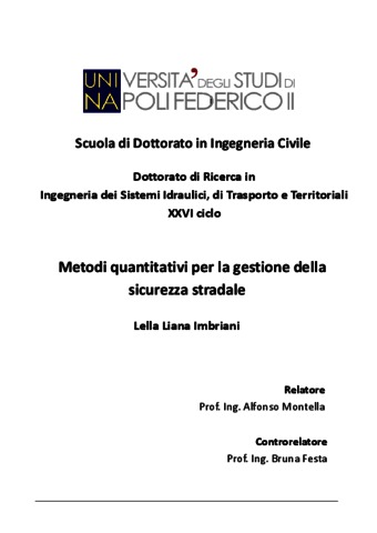 Imbriani, Lella Liana (2014) Metodi quantitativi per la gestione della sicurezza stradale. [Tesi di dottorato]
