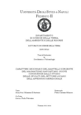 Mazzeo, Fabio Carmine (2014) CARATTERI GEOCHIMICI DEL MANTELLO SORGENTE DEL MAGMATISMO NAPOLETANO: NUOVE CONOSCENZE DALLO STUDIO DELLE OFIOLITI DEL SETTORE LUCANO DELL’APPENNINO MERIDIONALE. [Tesi di dottorato]