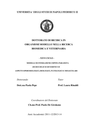 Pepe, Paola (2014) MODELLI DI INTERAZIONE OSPITE-PARASSITA DICROCOELIUM DENDRITICUM ASPETTI EPIDEMIOLOGICI, BIOLOGICI, PATOLOGICI E MOLECOLARI. [Tesi di dottorato]