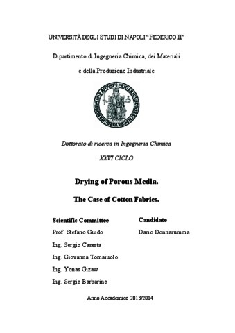 Donnarumma, Dario (2014) Drying of Porous Media. The Case of Cotton Fabrics. [Tesi di dottorato]