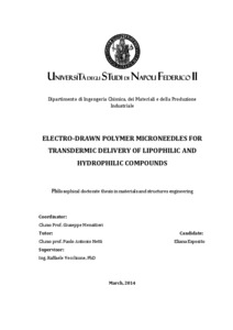 Esposito, Eliana (2014) ELECTRO-DRAWN POLYMER MICRONEEDLES FOR TRANSDERMIC DELIVERY OF LIPOPHILIC AND HYDROPHILIC COMPOUNDS. [Tesi di dottorato]